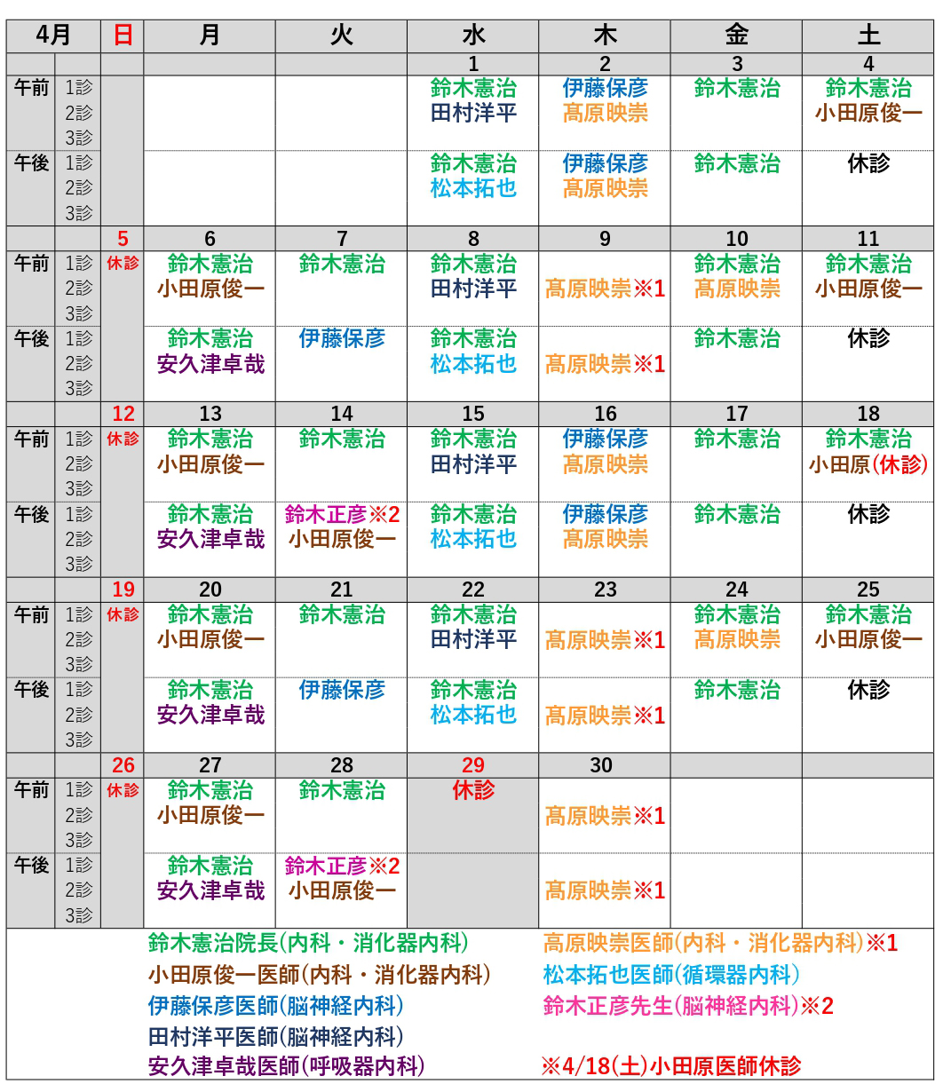 外来勤務医表をご確認いただき、お間違えの無いようご来院ください。