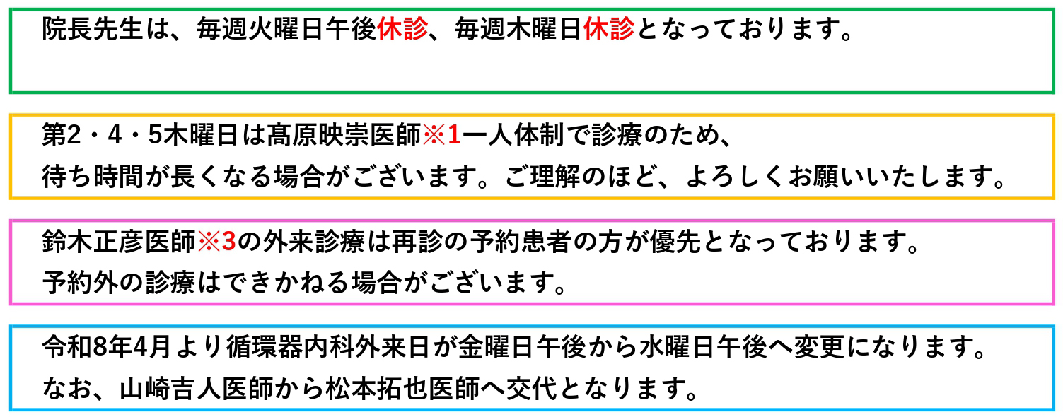 令和8年1月以降 髙原映崇医師 診療日変更のお知らせ